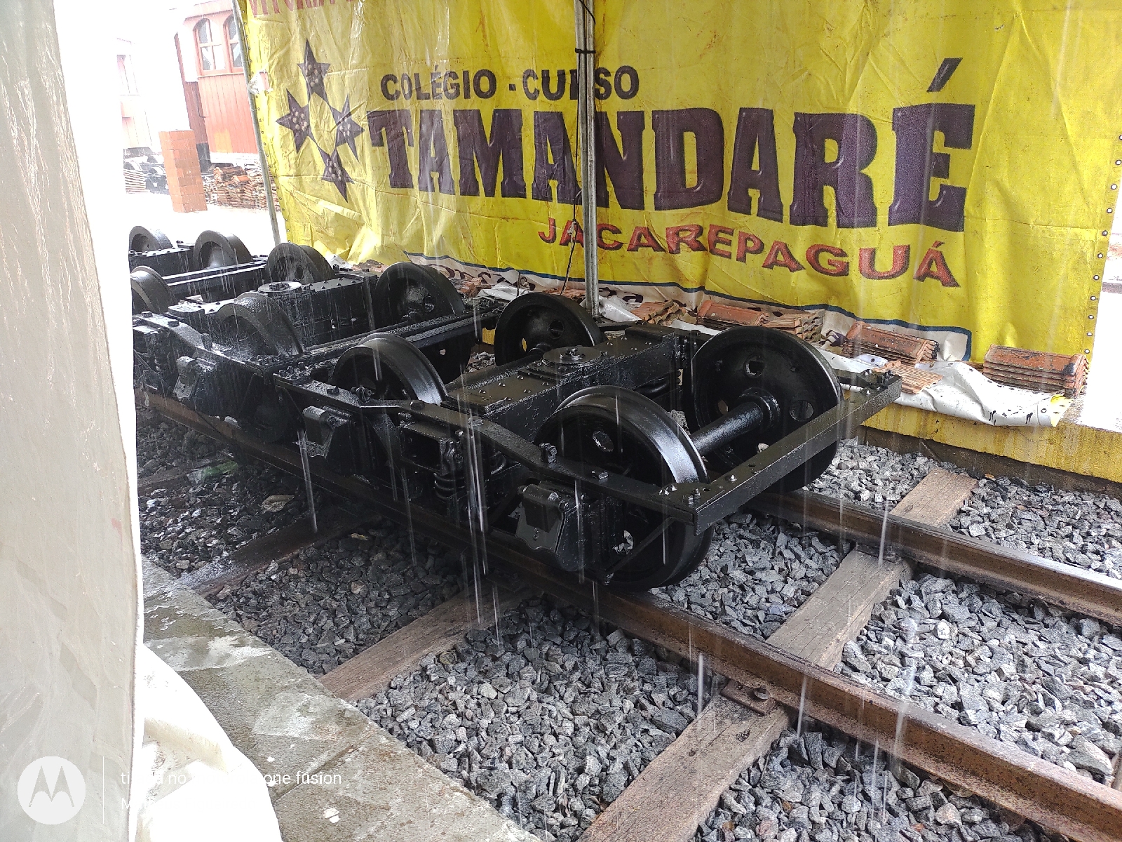 Apesar da chuva incessante a reforma dos carros de passageiros segue com a restauração de dois truques para montar o mecanismo do primeiro vagão.
